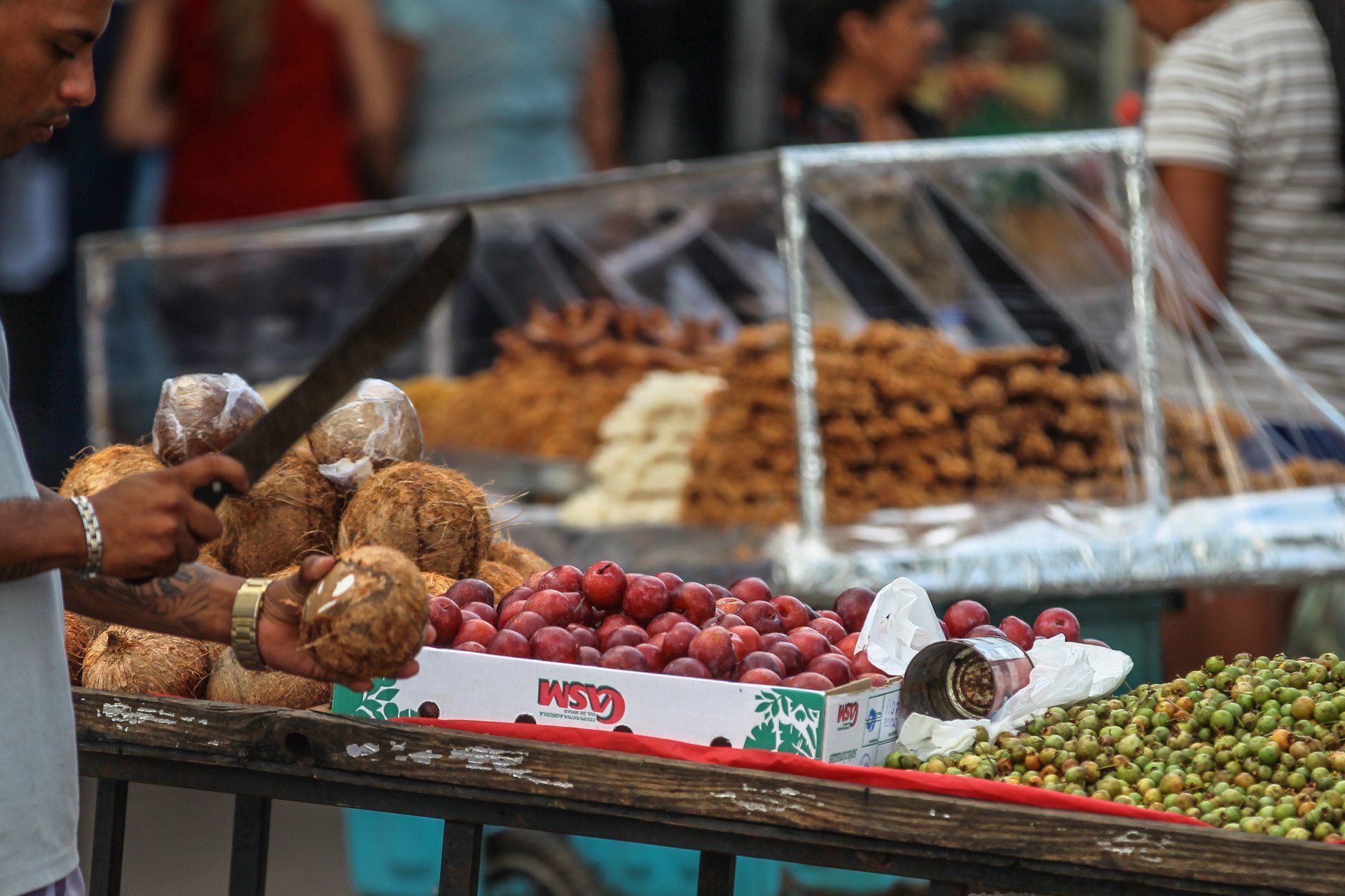 43 - Cuidado com a escolha da comida. Se escolher fazer um lanche rápido na rua, barracas vendem desde sanduíches a sorvetes e açaí. Esteja atento à higiene no preparo.