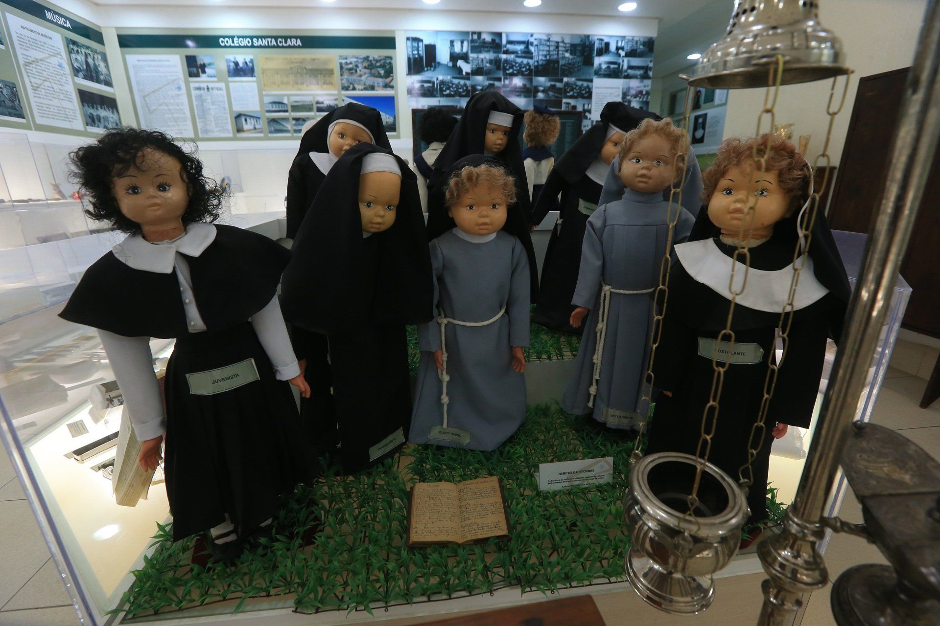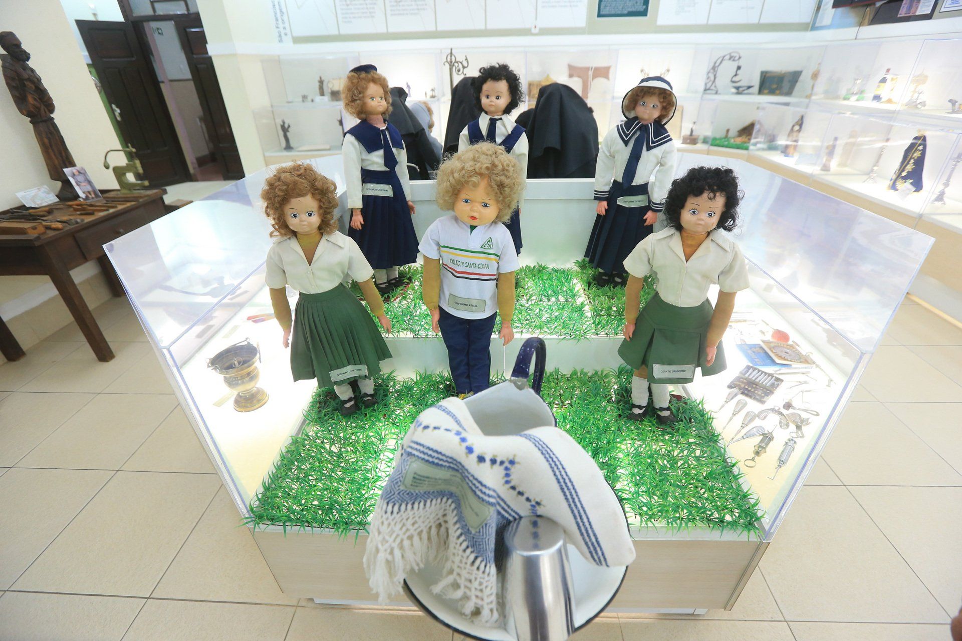 Montadas em bonecas antigas, o museu convida o público a fazer um passeio pela transformação do uniforme das alunas do Santa Clara. É possível ver as mudanças da moda ao longo das décadas, como os chapéus, gravatas e vestidos, em cores, comprimento e adornos diferentes. Há também um armário só com formas de sapatos de vários números vindos da Alemanha.