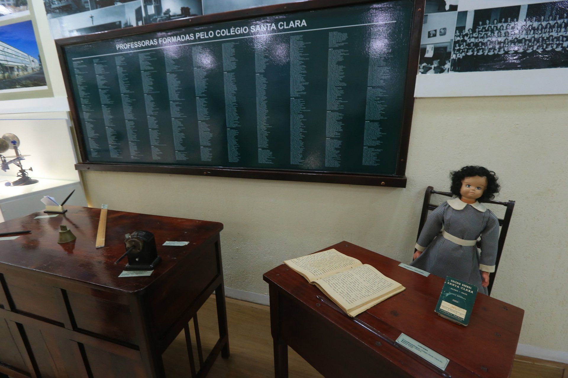 O Memorial Santa Clara também guarda documentos, bonecas da época e fotos das primeiras turmas de formandas do colégio. Tudo bem organizado. “Foram anos de pesquisa e estudo para se chegar até o acervo, fruto de doações e das nossas buscas na própria escola. Fazemos visitas guiadas pelo colégio com os alunos e abrimos para que a comunidade possa se sentir integrada ao ambiente, que é patrimônio da cidade”, explica.