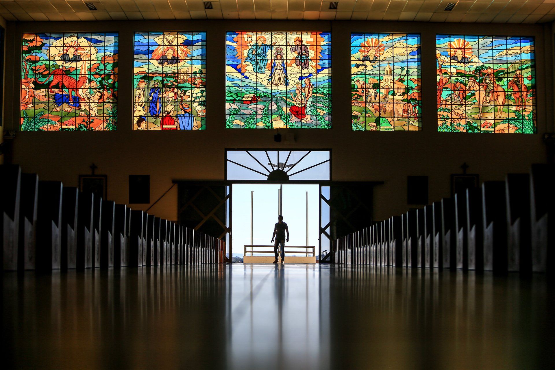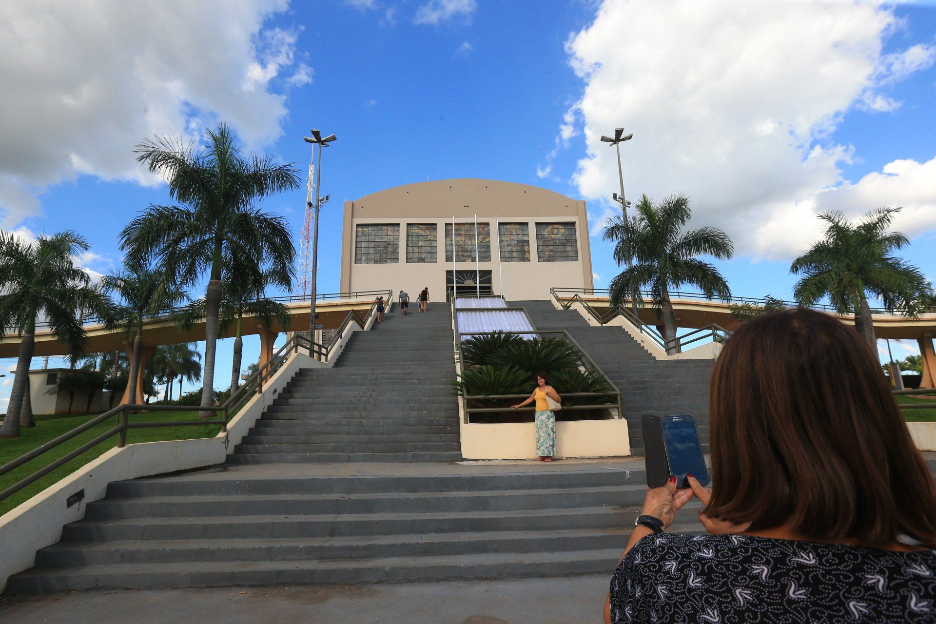 Sossegadamente, um homem dá lustre ao piso da nave da grande igreja, deixando o lugar brilhando, refletindo ainda mais fortemente a luz que entra pelas portas totalmente abertas e os vitrais que colorem um silêncio quase absoluto. Do lado de fora, outra pessoa dá retoques ao jardim, recolhendo folhas e arrancando brotos que atrapalham a perfeição daquela paisagem. A cidade, ali, se movimenta lentamente, bem devagar, sem pressa, sem tumultos. Estamos no epicentro da maior manifestação de fé do Centro-Oeste, mas não por enquanto. A paz ainda reina em Trindade.